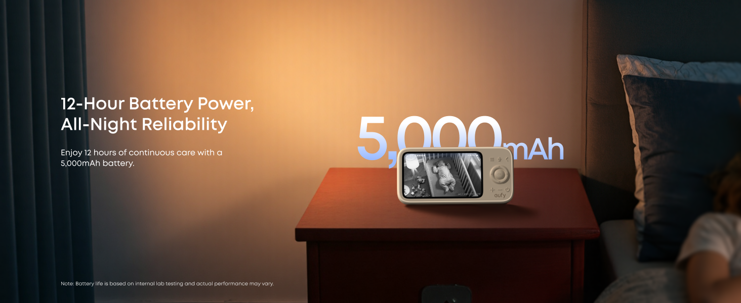 12-Hour Battery Power, All-Night Watch: With a 5,000mAh high-capacity battery, enjoy up to 12 hours of screen time on a single charge. Keep your little one under constant, dependable guardian. Note: Battery life is based on internal lab testing and actual performance may vary.